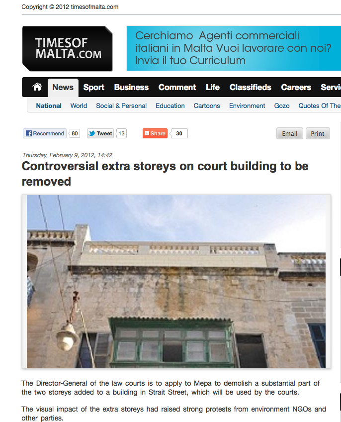 Biss il-Ministru qal li konxju mis-sensittività tal-Belt Valletta, allura, wara li din il-binja nbniet, issa qed niftħu applikazzjoni ġdida mal-MEPA sabiex inkunu nistgħu nbiddluha – ikun interessanti nkunu nafu xi flus jinvolvi dan kollu. Huwa grottesk il-fatt li filwaqt li l-Ministru Said qed jgħid li ntefgħat applikazzjoni sabiex jinħatt parti mill bini, jistqarr ukoll li hemm applikazzjonijiet fuq tender għat-tisbieħ intern tal-post! Tgħid la jinħatt parti mill-bini, min jerbaħ it-tender jitlob xi rimbors mill-Gvern għax it-tender ikun inbidel?